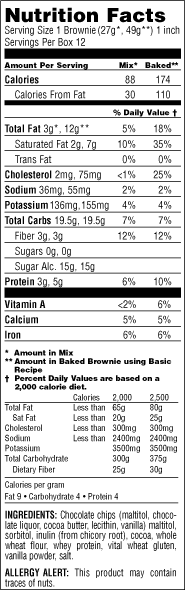 How does our sugar-free brownie stack up when compared to conventional brownies? Our mix has nearly 50% fewer calories, far fewer Net Impact Carbs, nearly three times as much fiber and more than twice as much protein as compared to other famous name brownie mixes. We won’t even get into the sugar. We also use healthful, quality ingredients like whole-wheat flour. And once you taste it, you won’t believe it’s sugar-free.