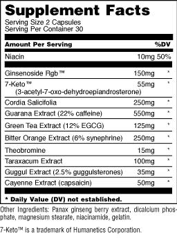 2) Another study registered remarkable effects on the thyroid. In this study triiodothyronine (T3) activity increased significantly in the group receiving 7-Keto™ and not the placebo (+17.88 ng/dl vs. 2.75 ng/dl; p<0.05) T3 is secreted by the thyroid and is used to regulate metabolism. When there is an increase in the T3 released this will speed up the metabolism and allow the person to drop weight faster.